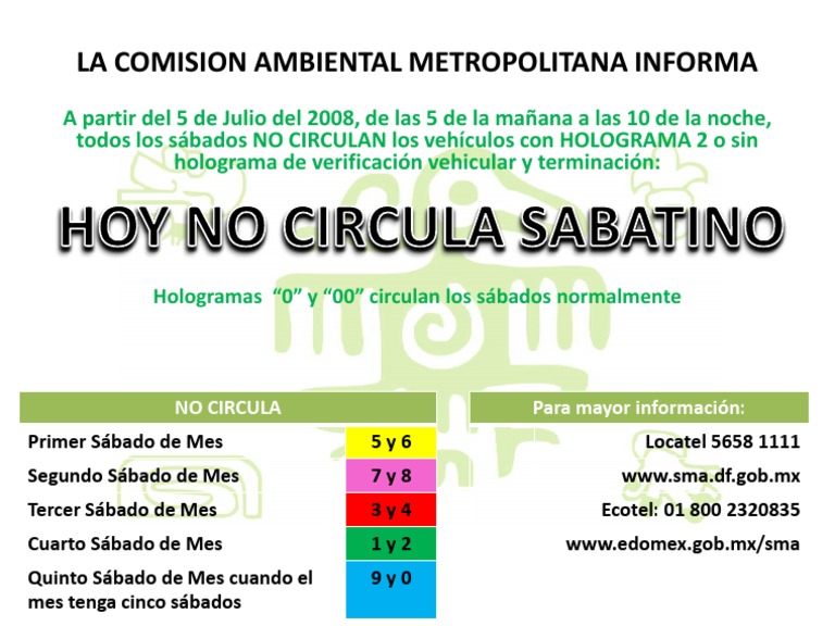 Hoy No Circula Sabatino : Hoy No Circula Sabatino Que Autos No Transitan - Por el programa hoy no circula sabatino este sábado 24 de abril descansan los automóviles con holograma 1 con terminación de placas pares, es decir 0, 2, 4, 6 y 8, además de todos los de holograma 2 y foráneos en la ciudad de méxico (cdmx) y el estado de méxico (edomex).
